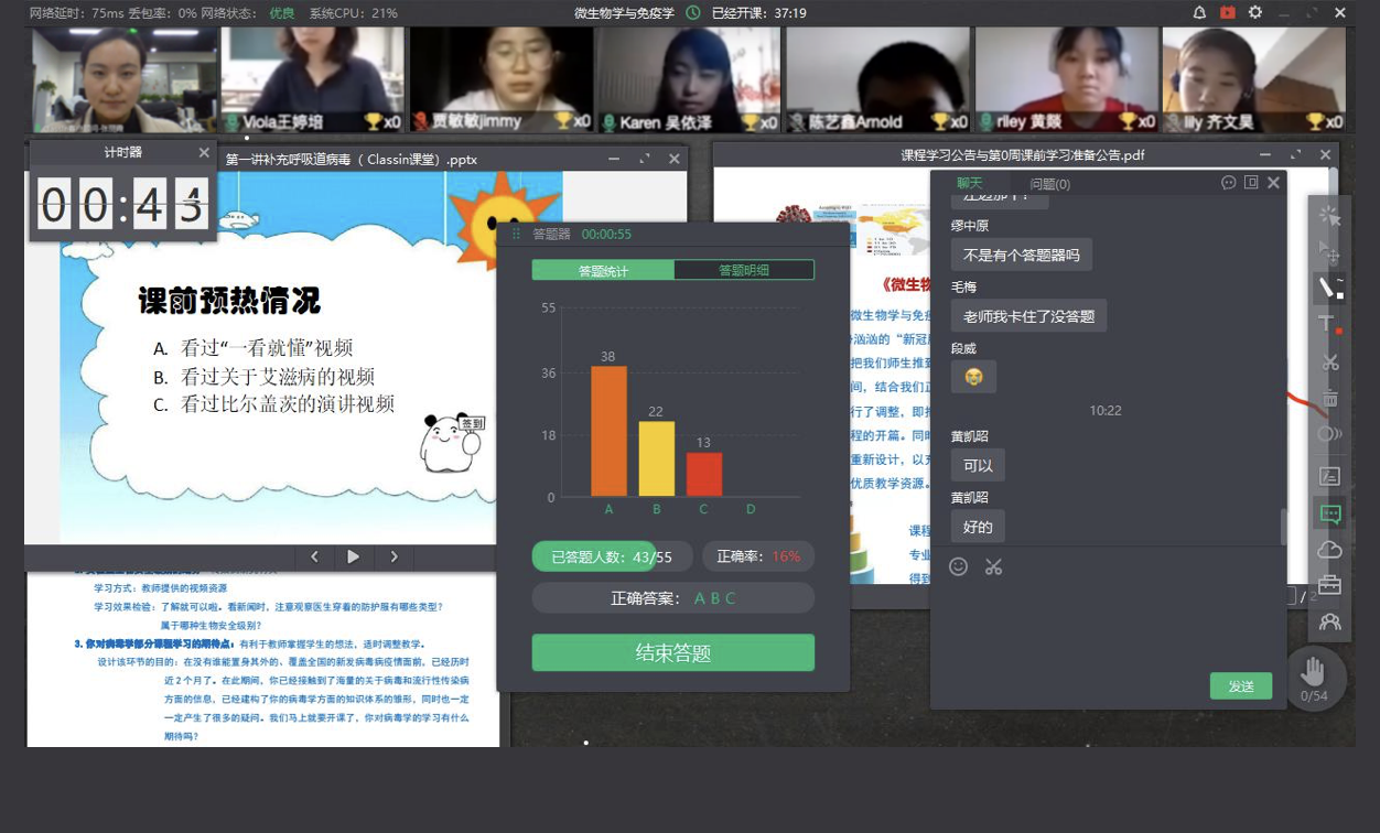 遍布全球各地的知名企业家通过线上方式和学生交流分享和互动,实现学以致用。