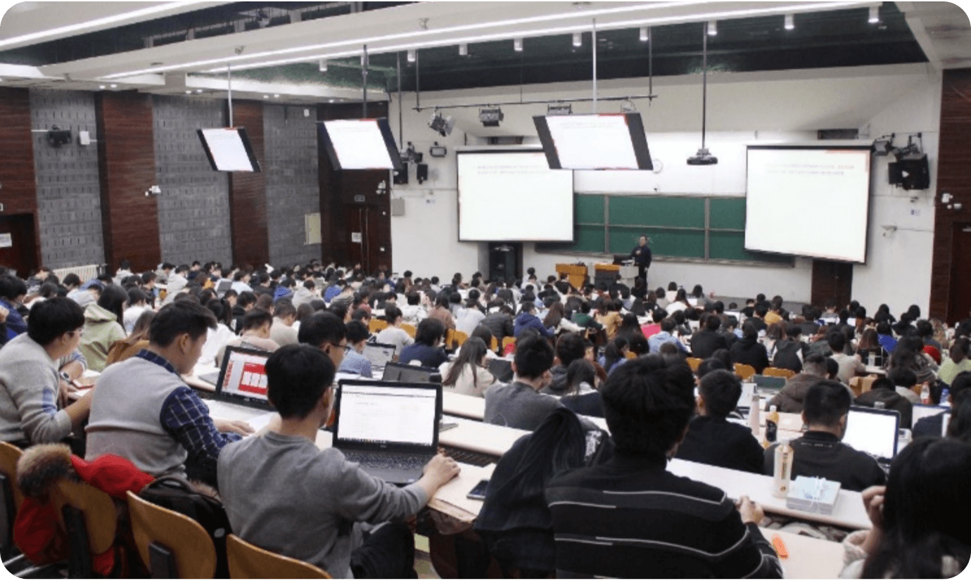 北京大学线上学习空间:2613门本科生课程 和1824门研究生课程,从通识课、研讨课、 选修课等各类教学形态,80%的老师选择 ClassIn 直播的教学方式。在特色选修课《全 球同上一堂课》项目中,北京大学使用 ClassIn 汇集全球名师和30多个国家和地区的 学生共同上课,实现让不同地区的学生相互 交流、共同学习、共同促进。