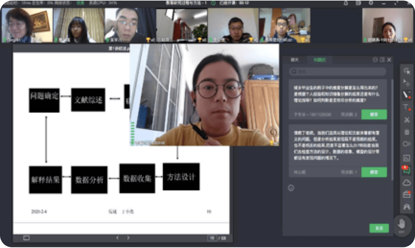 遍布全球各地的知名企业家通过线上方式和学生交流分享和互动,实现学以致用。