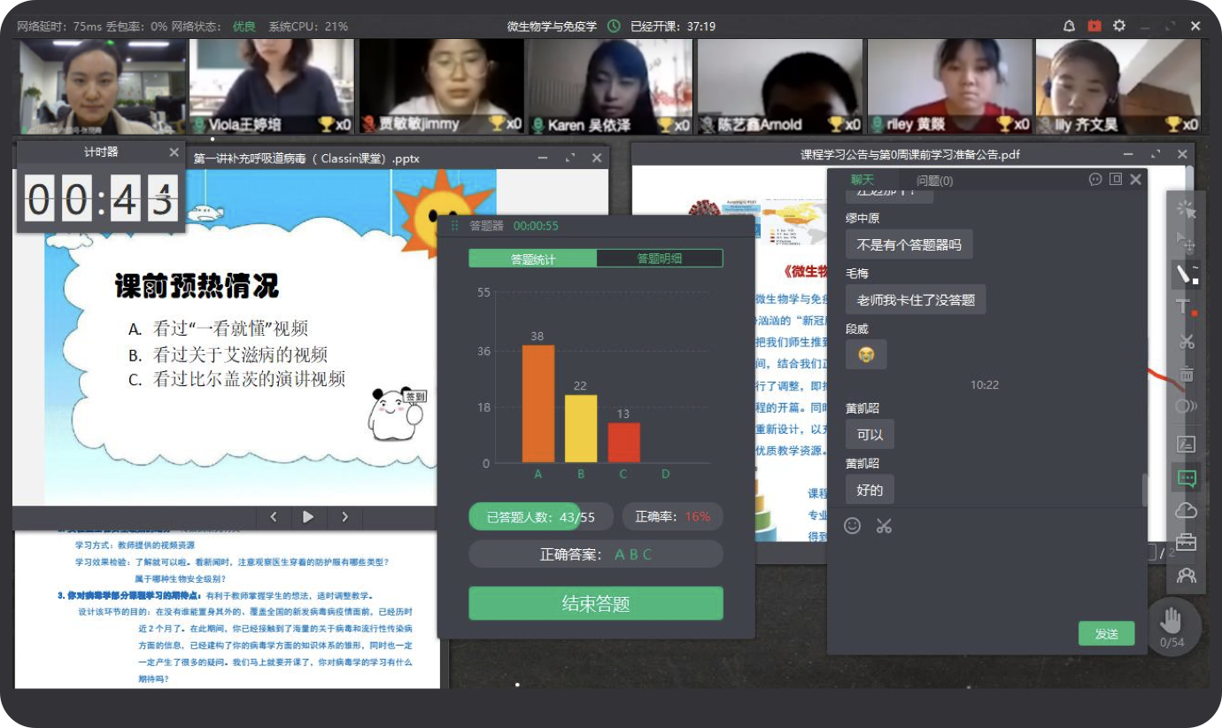 西安开放大学通过 ClassIn 部署,顺利完成 “1+N”课程设置,将1个课程分发到各个开 放大学分校,有效利用了优质教师资源,将 优秀的课程远程传播给了其他校区的同学。