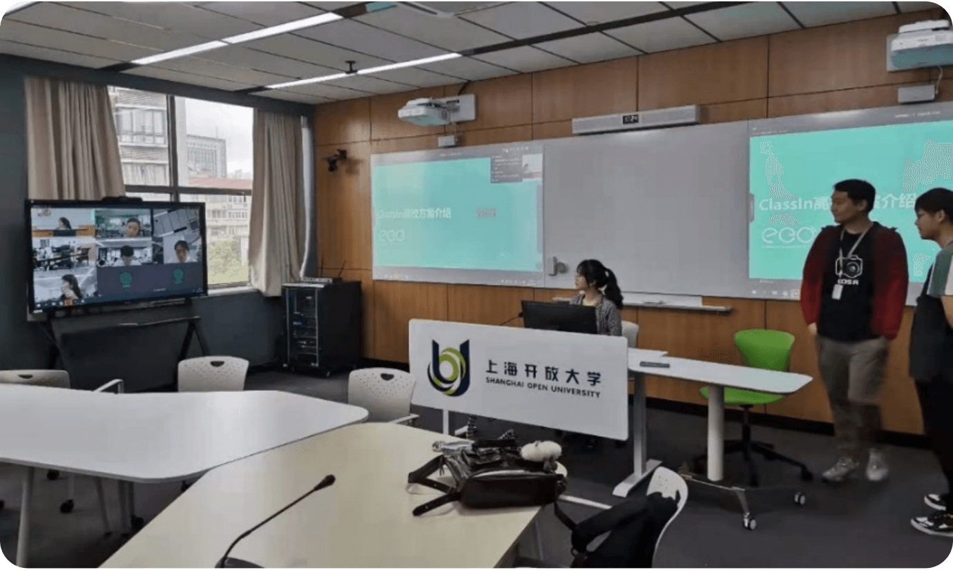上海开放大学全校进行 ClassIn 部署,进行 全面的智慧教室建设,全校使用 ClassIn 进行 教学和常态化录播,录播视频自动同步到校 内资源管理中心,学生可以课后回看课堂视 频,成为了稳定使用 ClassIn 直录播和资源管 理的经典案例。同时上海开放大学通过 ClassIn 平台对各大会议进行直播,观看人数 累计20万人次以上。